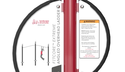 [video: Landscape Structures logo blank background. Text banner slides to middle of video text reads: FitCore Extreme challenge your athletic abilities.]