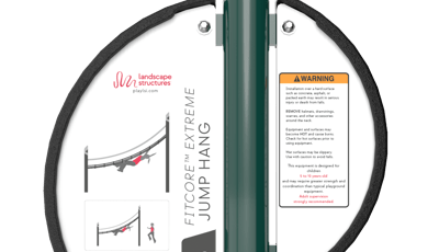 [video: Landscape Structures logo blank background. Text banner slides to middle of video text reads: FitCore Extreme challenge your athletic abilities.]