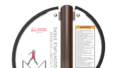 [video: Landscape Structures logo blank background. Text banner slides to middle of video text reads: FitCore Extreme challenge your athletic abilities.]