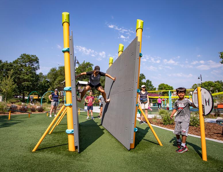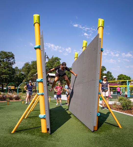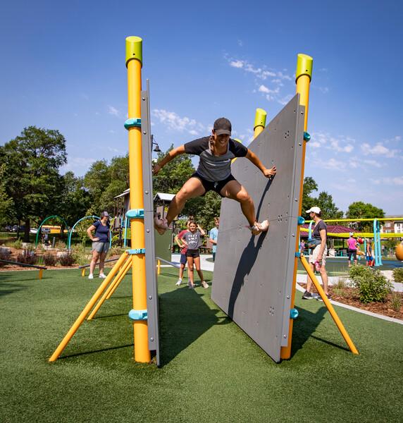 Video features a Landscape Structures FitCore™ Extreme Ages 13 plus outdoor fitness obstacle course.