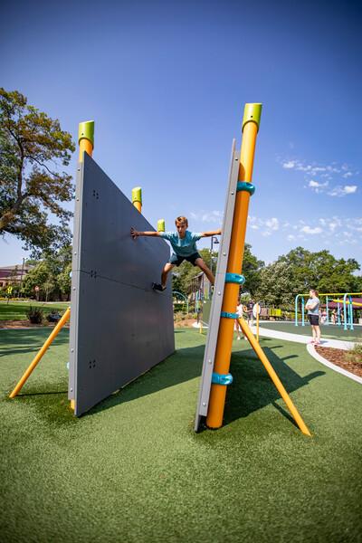 - Walls are 96" high and made of Gray GripX to provide a grippy surface to traverse