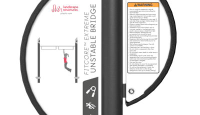 [video: Landscape Structures logo blank background. Text banner slides to middle of video text reads: FitCore Extreme challenge your athletic abilities.]